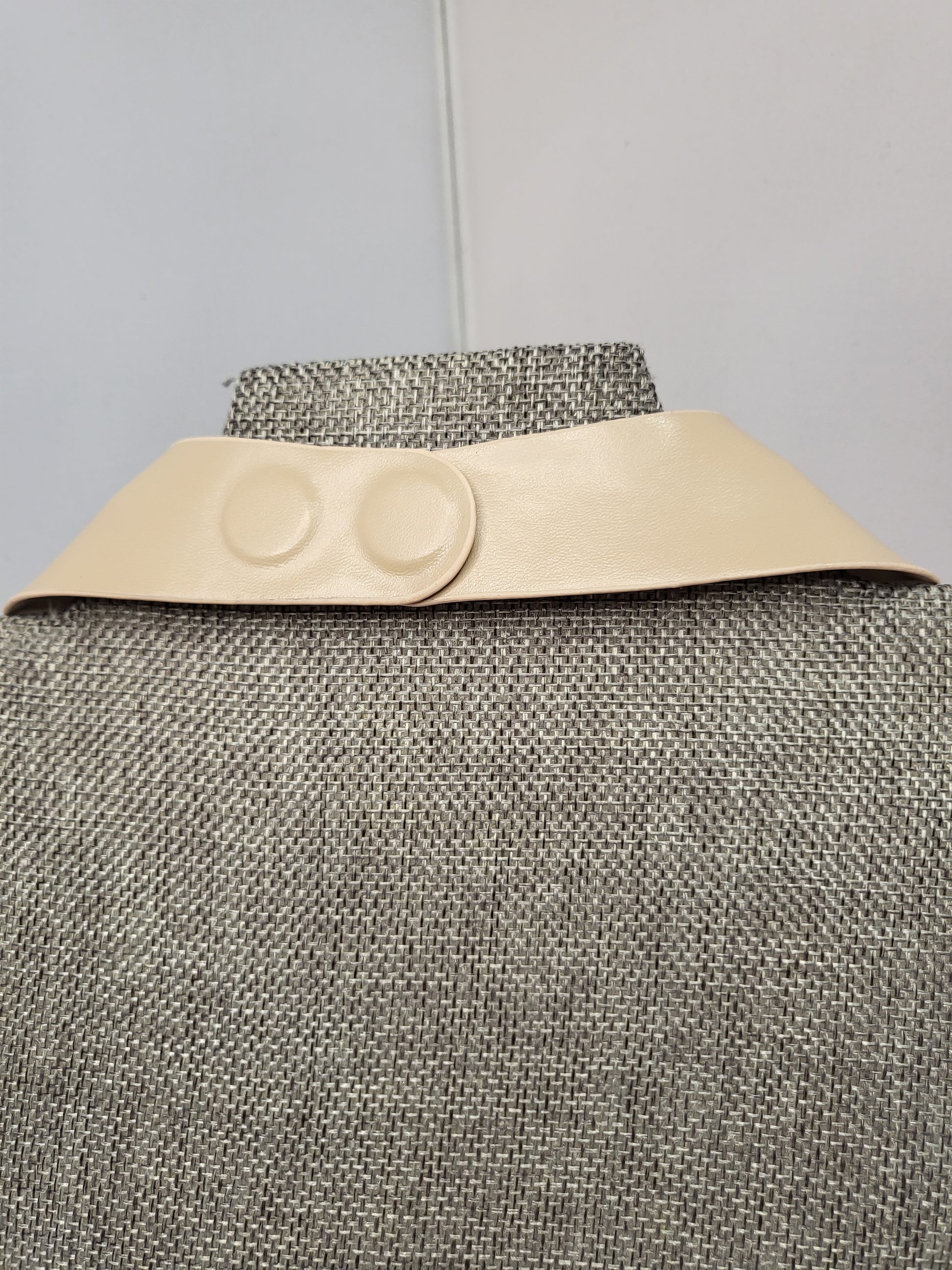Multi-Layered Beige Adjustable Magnetic Beaded Necklace. Faux Leather Magnetic Closure.