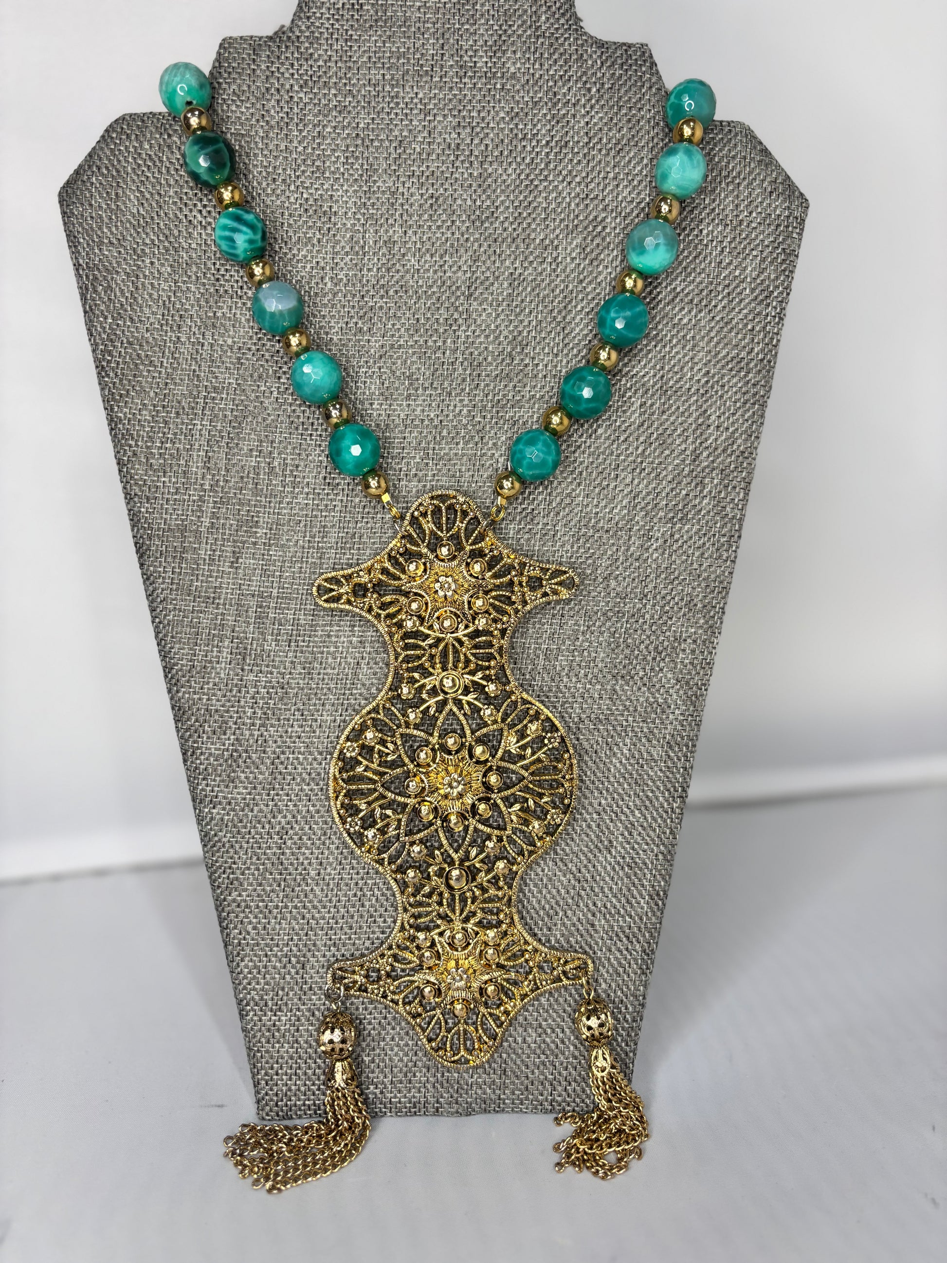 1960’s Pendant Massachusetts Estate on a 1970’s Agate Bead Necklace from a Georgia Estate
