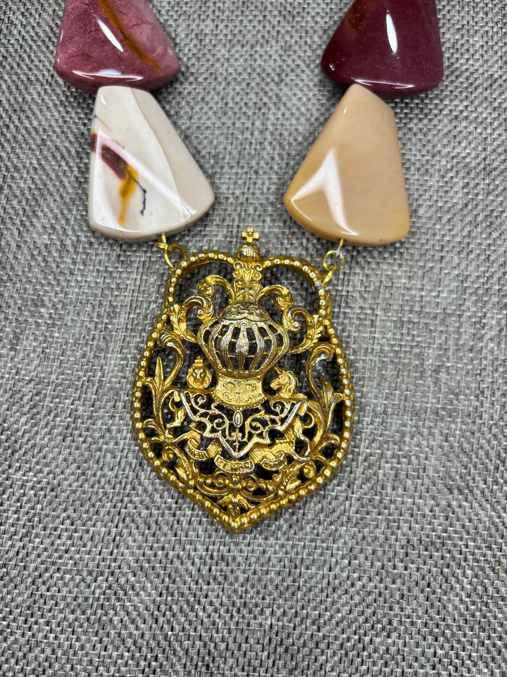 1950’s Signed Art Brooch from a North Carolina Estate on a 1960’s Mookaite stone Necklace from a Texas Collector