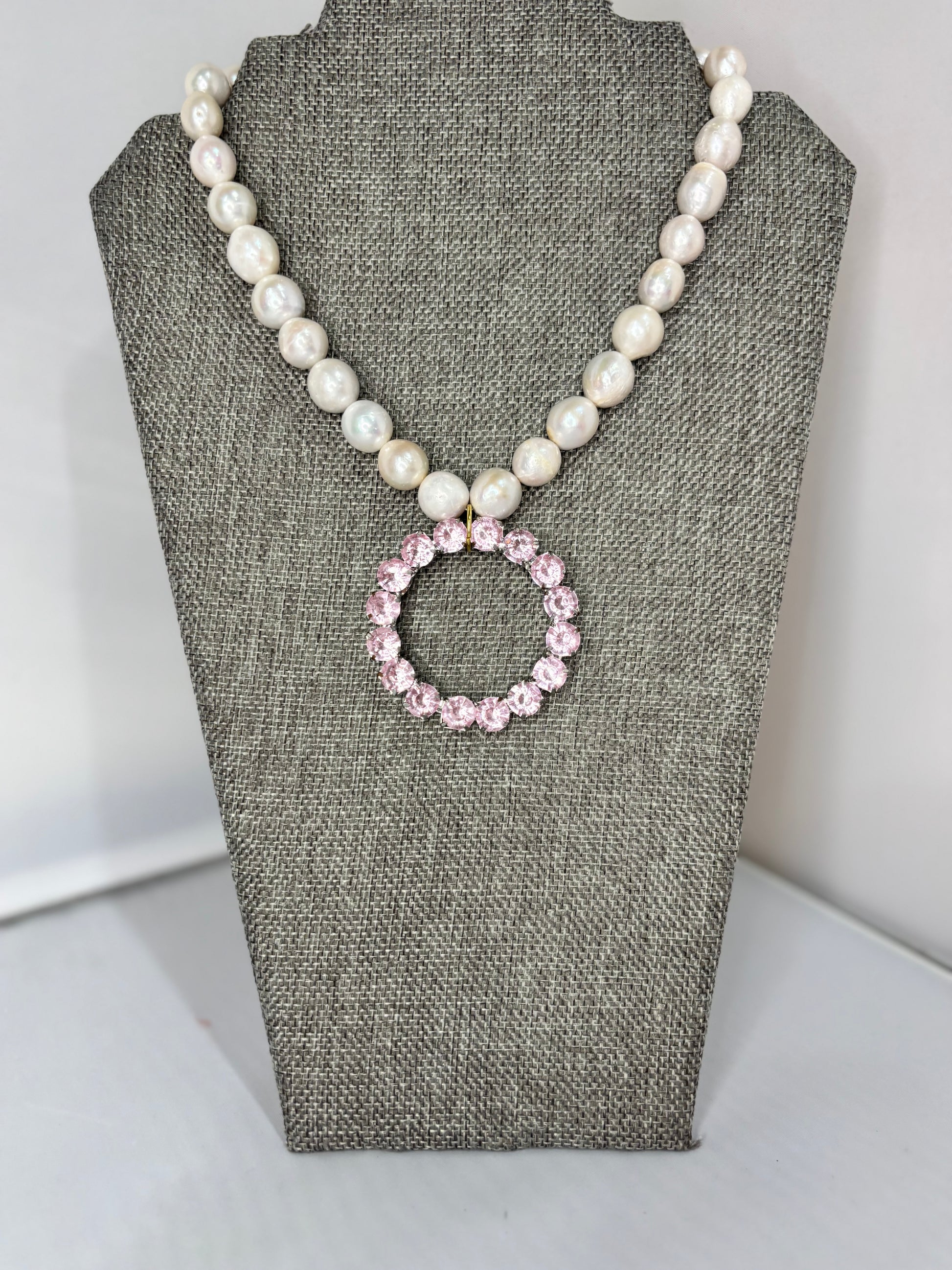 MADE- Pink Rhinestone & Baroque Pearl Necklace