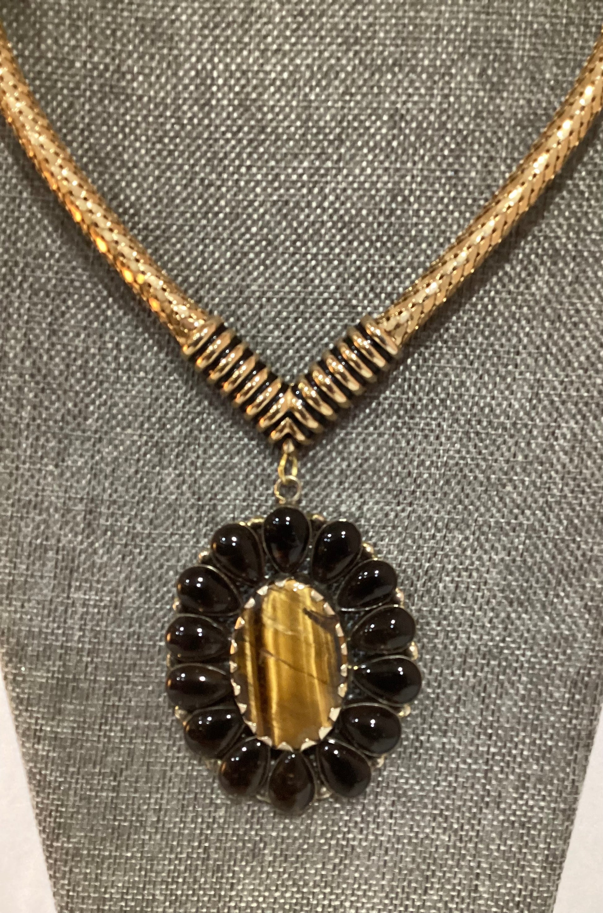1960’s Tiger Eye/ Smokey Quartz Silver Setting Pendant from a Montana Collector on a 1960’s Necklace from a Virginia Estate