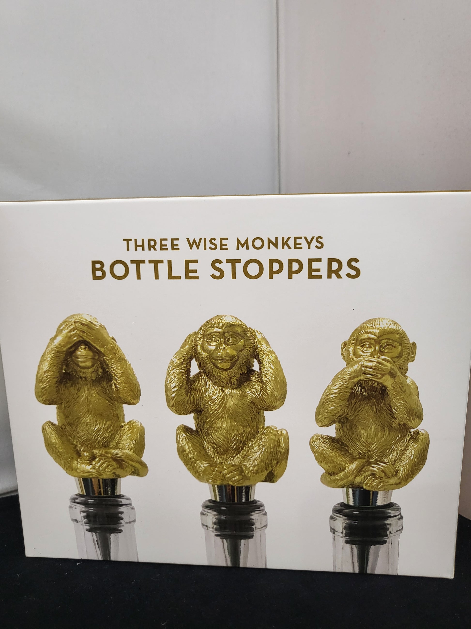 Three Wise Monkeys Bottle Stoppers. Set of 3